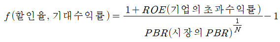 r= 할인율 , ROE = 자기자본수익률(기업의 초과 수익률), N= 해당 ROE의 지속기간