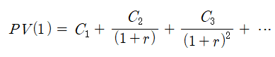 결국 PV(1)은 PV(0)에서 1+r을 곱한 것이다.