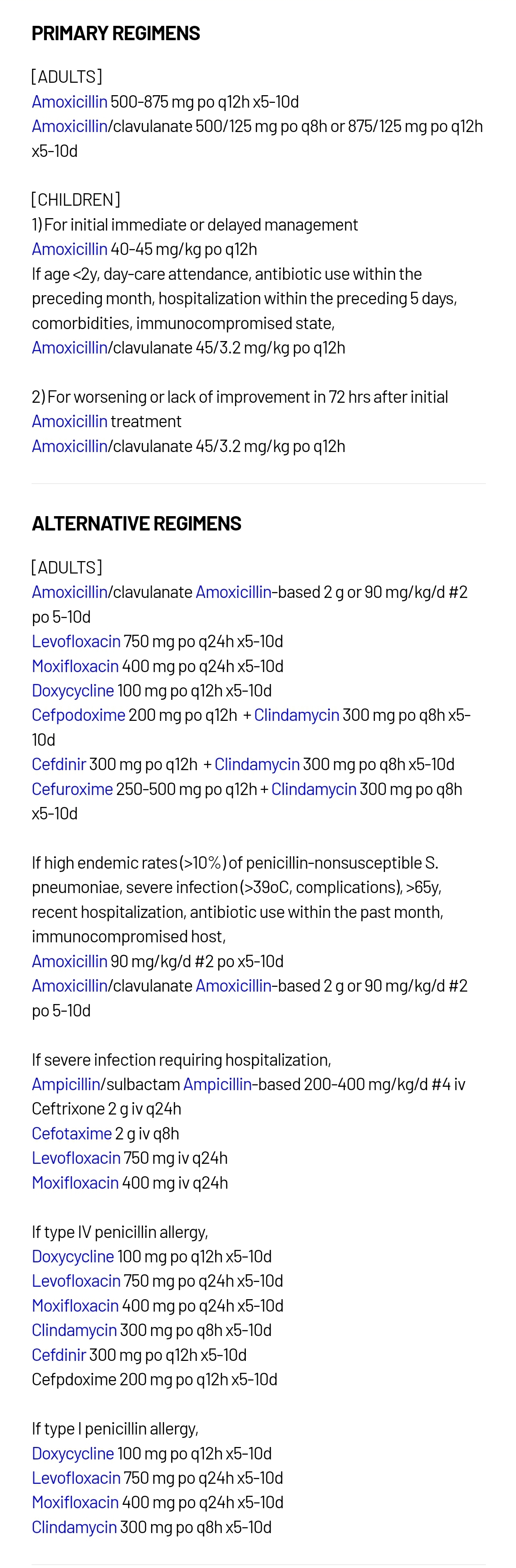주로 고용량의 amoxicillin이나 amoxicillin/clavulanate치료에